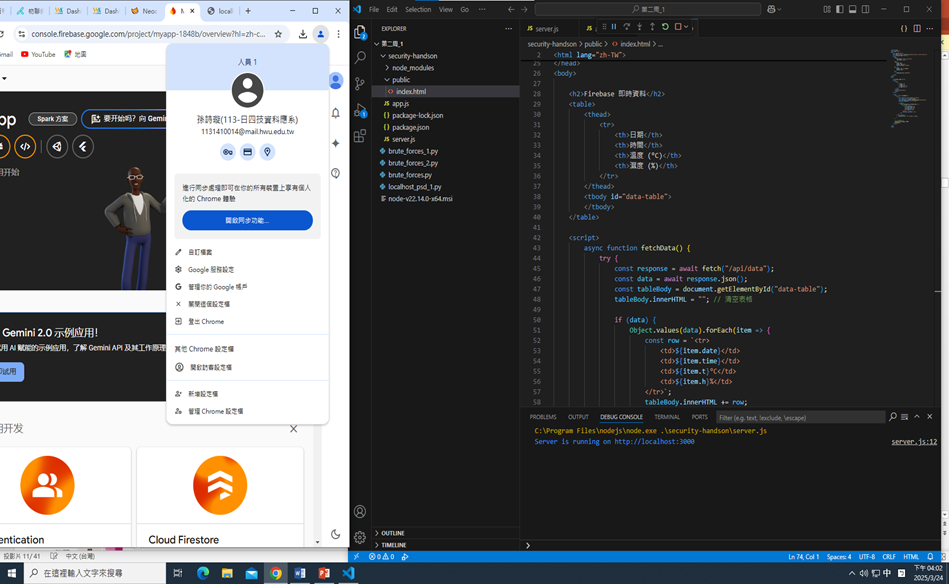 二、溫溼度感測器製作過程.、網頁版資料呈現操作過程(FIREBASE步驟過程)